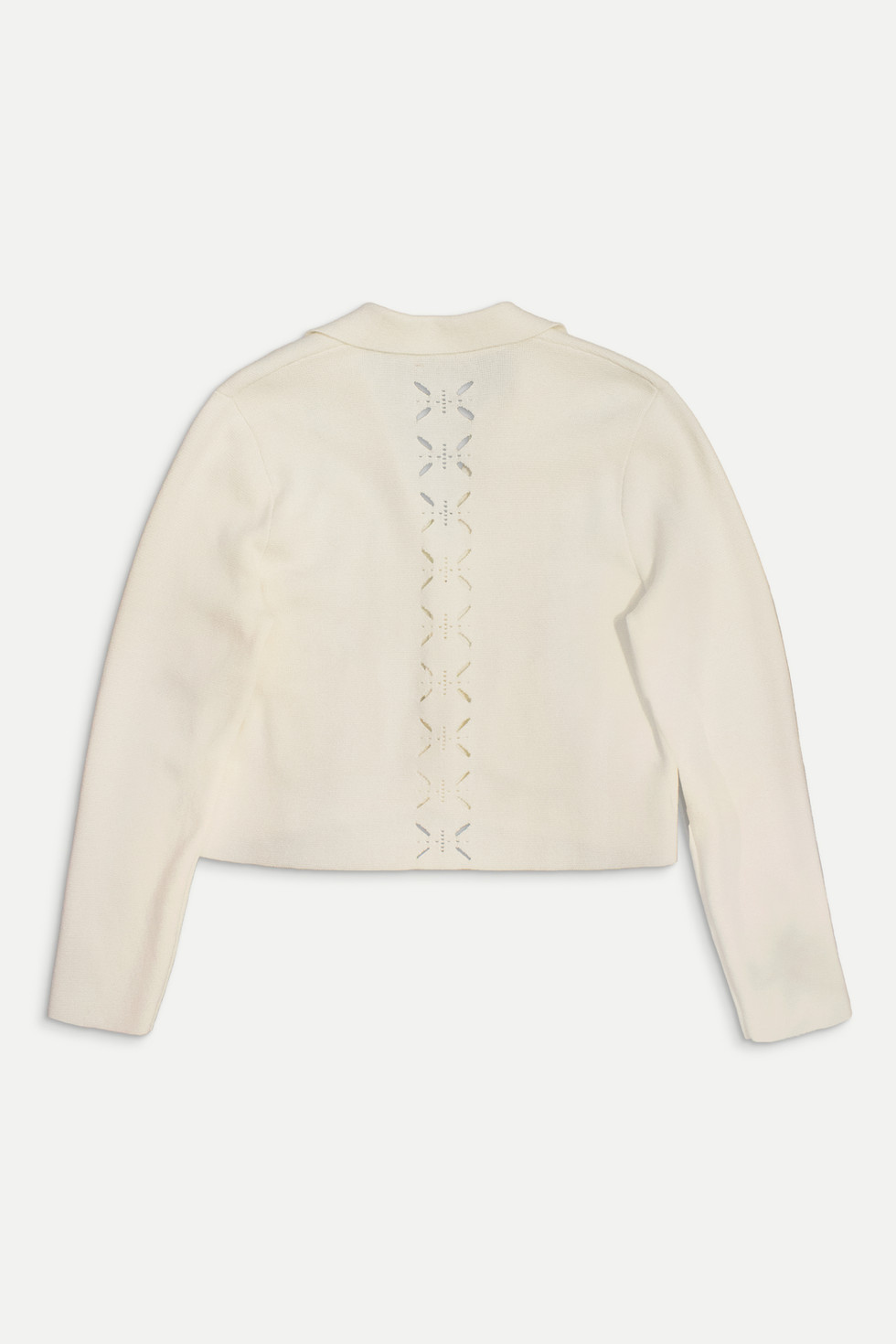Box fit cropped-length knitted jacket featuring our signature Art of Mending-inspired knitting pattern.