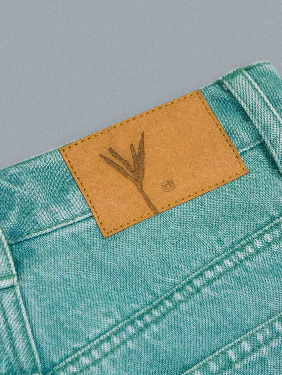 This denim set is crafted from 100% cotton, using eco enzyme bleach wash to achieve bright green tone without harmful treatment.